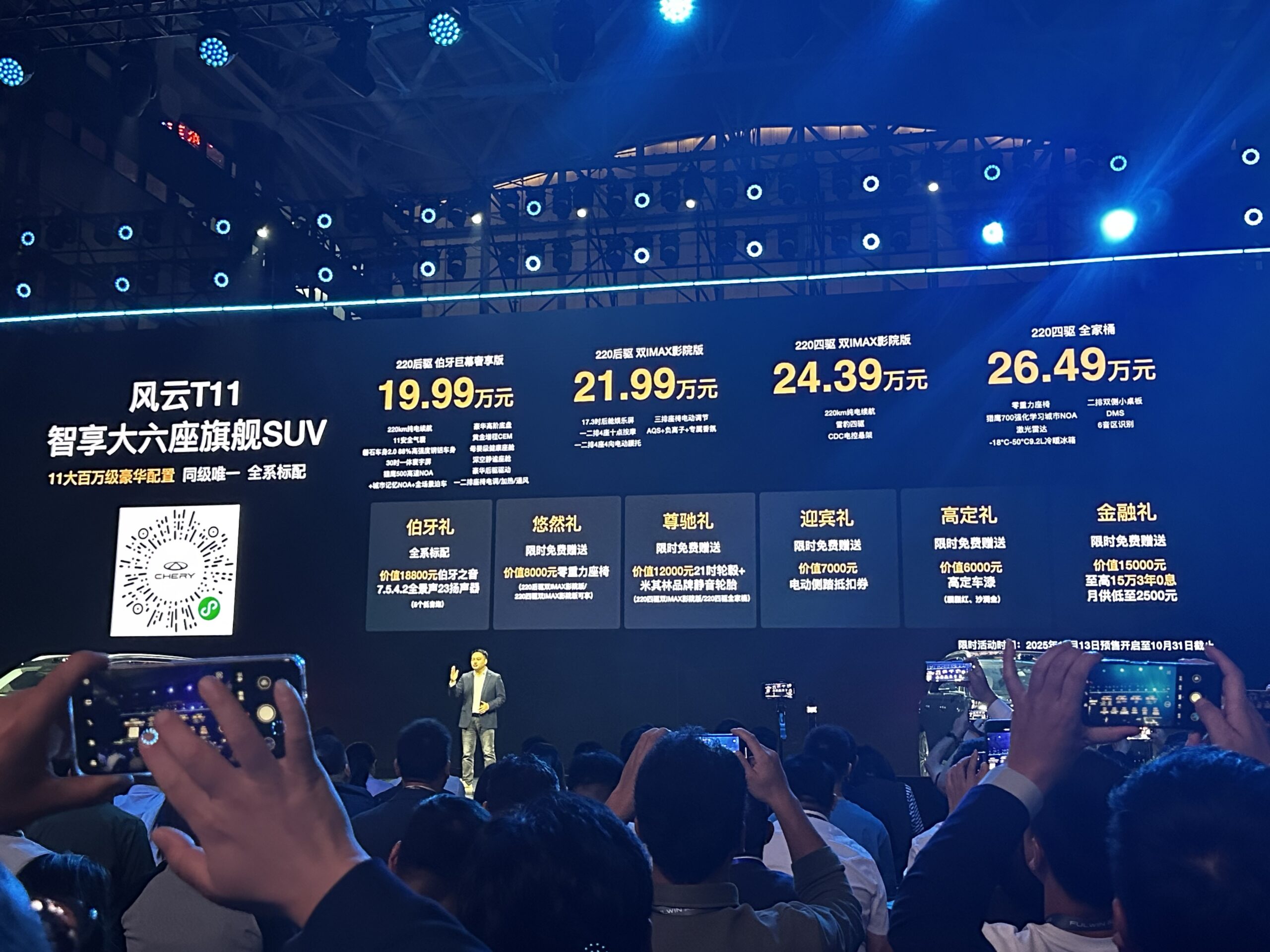 10月13日,奇瑞的大SUV风云T11正式亮相,预售价19.99-26.49万元。